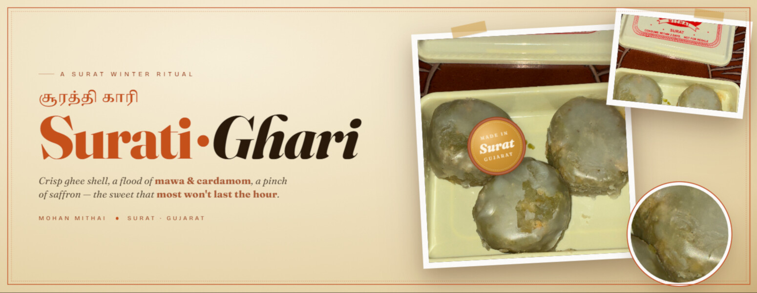 குஜராத் மாநிலத்தின் சூரத் நகரம் என்றாலே பலருக்கும் வைரம் நினைவிற்கு வரும். எனக்கு இனிப்புத் தான் நினைவிற்கு வரும். என் சகலை அடிக்கடி அந்த நகருக்கு அருகில் இருக்கும் தொழிற்சாலைக்கு வியாபார விஷயமாகச் சென்று வருவார். ஒவ்வொரு முறை போய் வரும்போதும்…