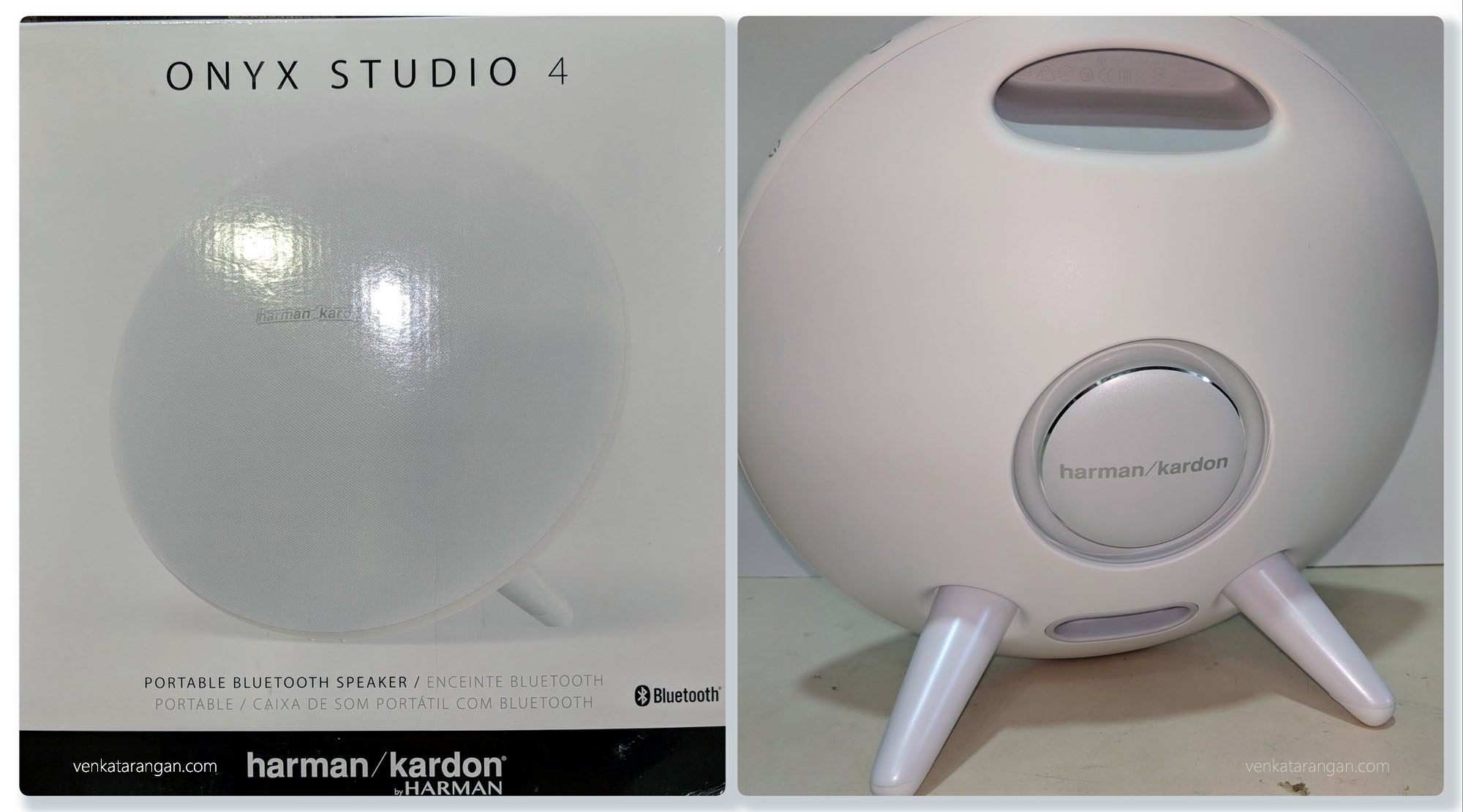 After much searching, getting social media suggestions from friends, and listening to various speakers in shops I selected Harman Kardon Onyx Studio 4 – The Croma store where I tried the speaker and had a super helpful salesman, unfortunately, didn’t have the colour (White) I wanted in stock, so I decided to buy it online at Amazon India for Rs.13,000 (USD 180). On receiving the speakers, I was stunned by its beauty and the small footprint – a bit heavy though, which is a good thing for a speaker, showing they haven’t compromised on the magnets that go to make the speakers.
