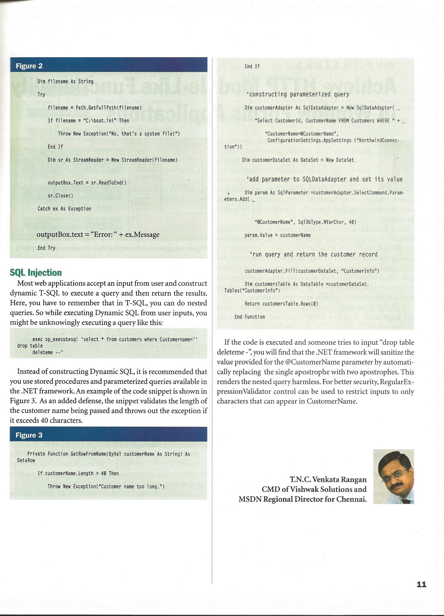 Recently I had written an article about Web Security, titled “External Inputs can be hazardous” which got published in last month MSDN Magazine – India Edition. Download the full article from here.