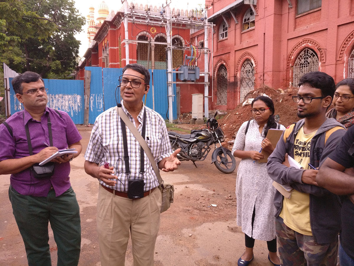 The walk began outside Madras University’s Senate hall, proceeding to Chepauk Palace (now inside PWD department’s campus), Walajah Big Mosque, Big street Mosque and then to Amir Mahal (current residence of the Arcot Nawabs). Anwar gave an introduction to Muslim’s in Tamil Nadu – who have been here for more than 1500 years; The early Nawabs were followers of Shia branch of Islam and the latter were followers of Sunni Islam. Pre colonization Tamil’s were not an agro economy as generally believed to be, but they were a marine power and the economy benefited immensely from trade across shores – exports of Pearls from Pandian country and Pepper from Kerala were of great demand in Rome; in fact, Roman senators complained that their women used too many Indian spices and pearls, which drained the Roman Empire of precious metal.