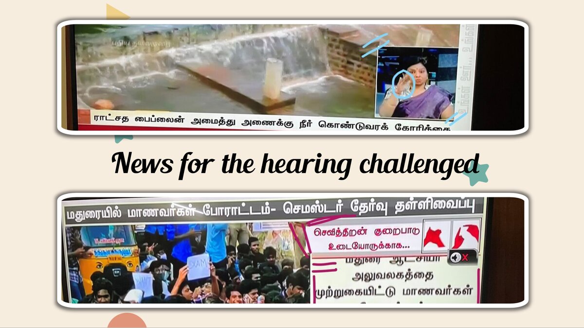 ரொம்ப நாட்களாக செய்கிறார்கள் போல, நான் இன்று தான் கவனித்தேன். தமிழ் செய்தி டிவி சேனல்களில் கேட்கும் குறைபாடு உள்ளவர்களுக்காக ஒலியாக வாசிக்கின்ற செய்தியை, செய்கை முறையில், எழுத்தில் கொடுக்கிறார்கள். இது வரவேற்க வேண்டிய முயற்சி. சன் நியூஸ் சேனலுக்கும், புதிய தலைமுறைக்கும் வாழ்த்துக்கள்.