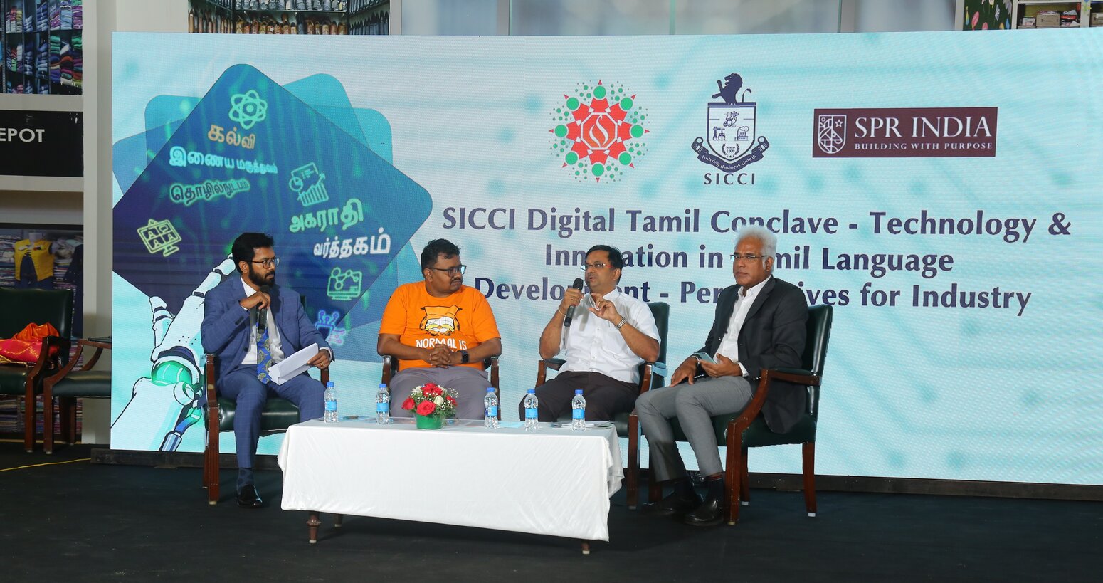 Yesterday, I had the opportunity to speak at the SICCI event titled “Technology & Innovation in Tamil Language Development – Perspectives for Industry” held in SPR City, Chennai. The focus of the discussion was the exciting potential of Artificial Intelligence (AI) to revolutionize the Tamil landscape. The conversation explored how AI can boost day-to-day productivity for traders, entrepreneurs, and businesses.