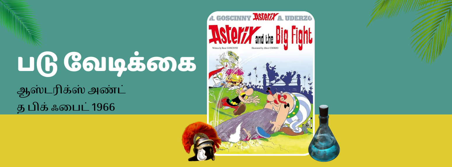 புதுக் கதையில்லை. நான் படித்தது ஆஸ்டரிக்ஸ் அண்ட் த பிக் ஃபைட் (Asterix and the Big Fight 1966). ஜூலியஸ் சீசரின் காலத்தில் நடக்கும் ரோமானியப் படைகளின் குளறுபடிகளும், கவுலிஷ் வீரர்களின் அதிர்ஷ்டமும், புத்திசாலித்தனமும் தான். இந்தக் கதையில் மந்திரங்களைக் கற்றுத் தேர்ந்த அறிஞர் கேடாஃபிக்ஸ் (Getafix) மீது பாறாங்கல் விழுந்து நினைவுத் தப்பிவிட, மந்திர மருந்து இல்லாமல் கவுலிஷ் கிராமத் தலைவரும் அவரின் பங்காளி கிராமத் தலைவரும் சண்டையிடும் சூழ்நிலையில் என்ன நடக்கிறது என்பது தான். மந்திர மருந்தை எப்படியாவது கலக்கிவிட வேண்டும் என்று பலரும் செய்யும் முயற்சி படு வேடிக்கை. அதைப் படித்து விழுந்து விழுந்து சிரித்தேன்.